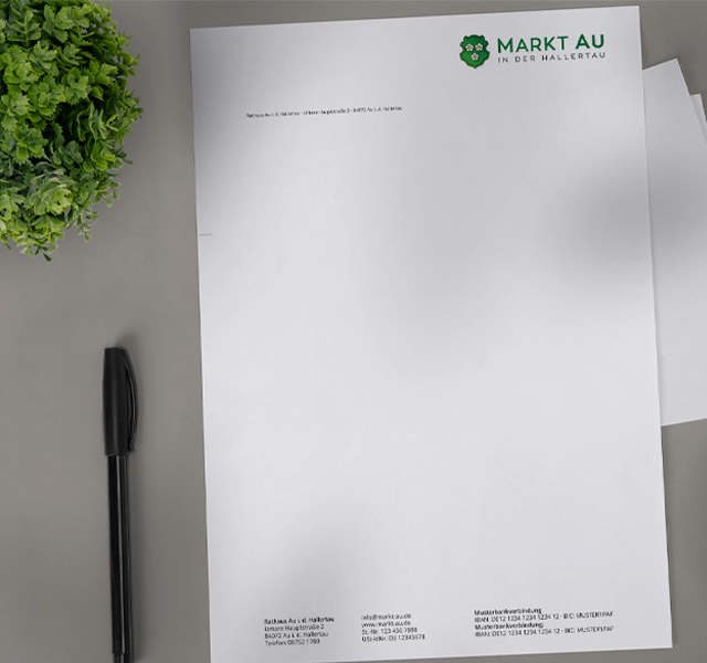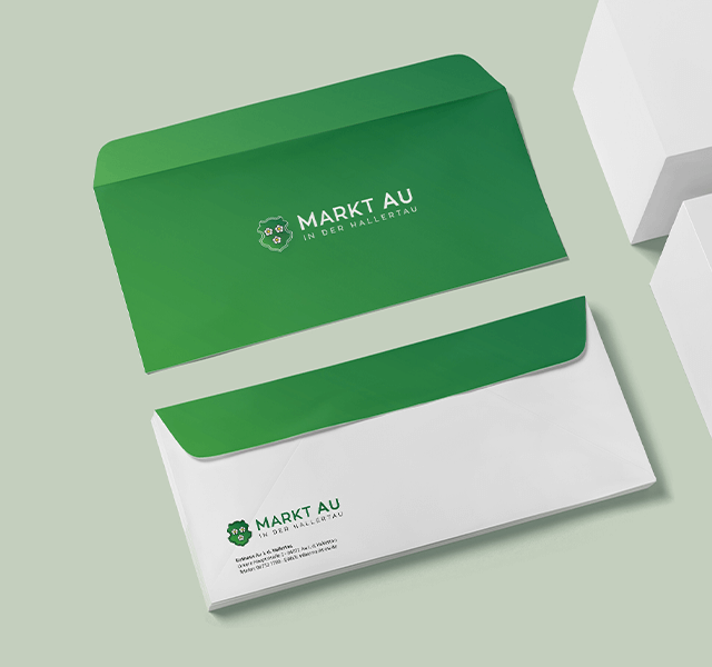 Für den Markt Au haben wir das Wappen-Logo modernisiert und einen Styleguide erstellt. In dem sind die Farben, Schriften und Logos festgehalten. Seit vielen Jahren betreuen wir auch die Website und das Hosting für den Markt.
