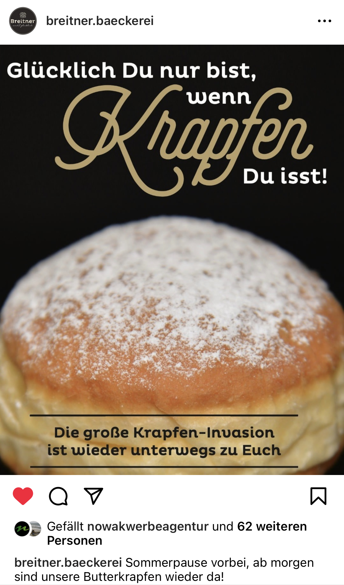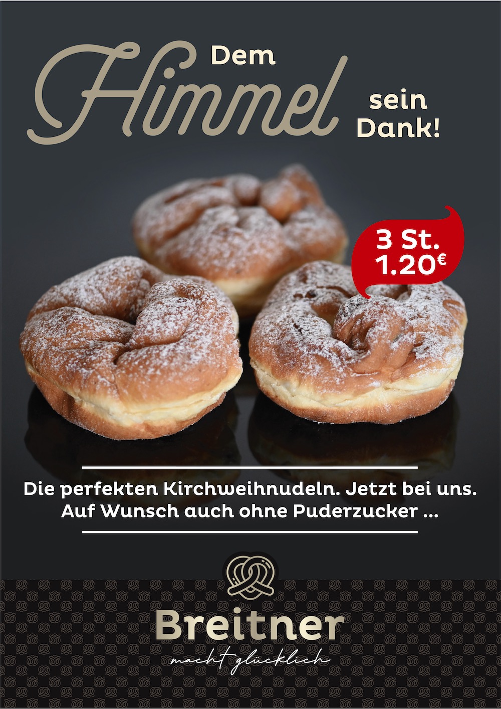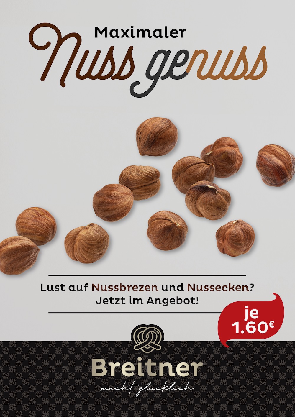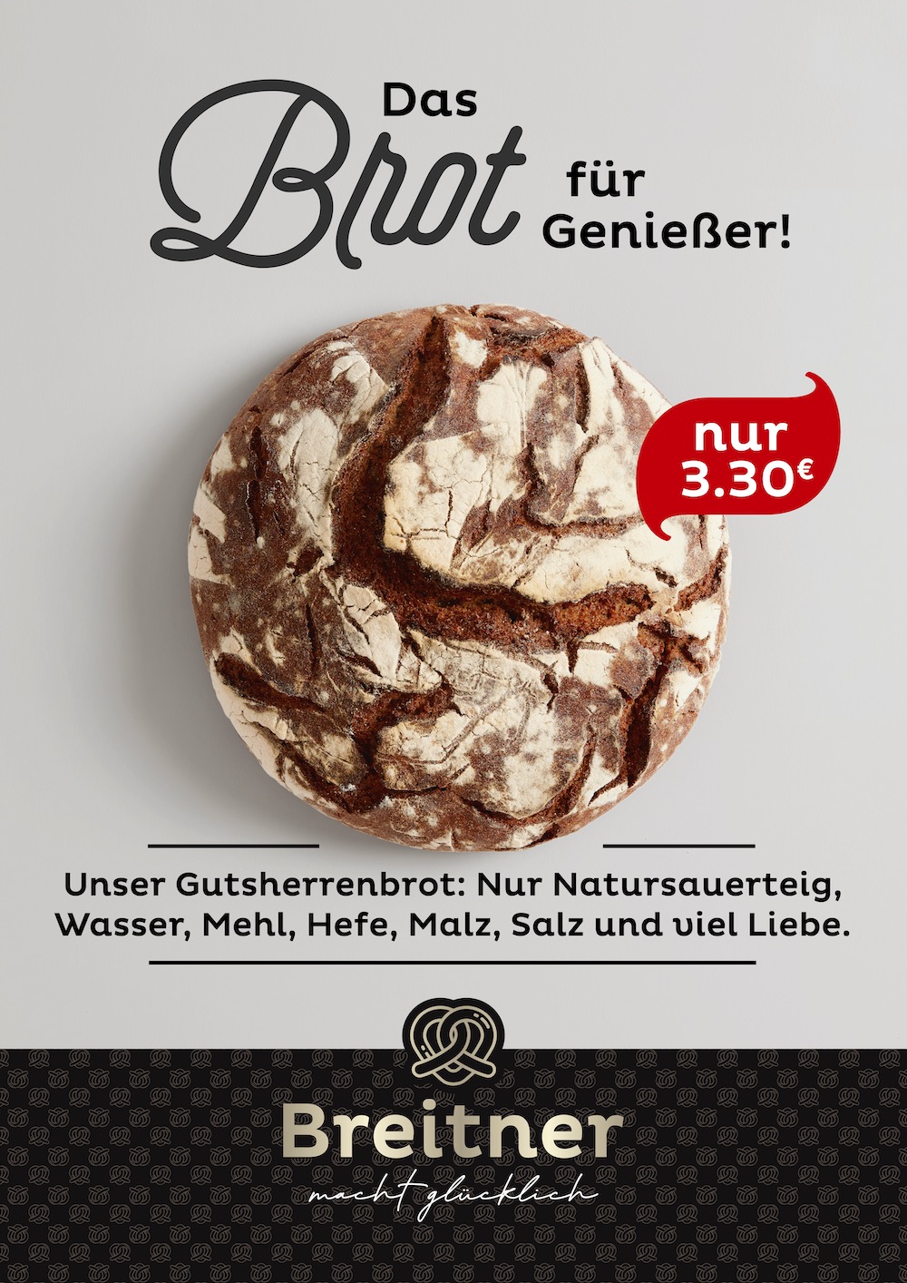 Wir haben – passend zum neuen Corporate Design – zur Absatzförderung eine Serie von Plakaten, Anzeigen- und Social Media Postvorlagen für alle Filialen der Bäckerei Breitner aus Pfaffenhofen mit Text, Fotos und Layout gestaltet und realisiert.