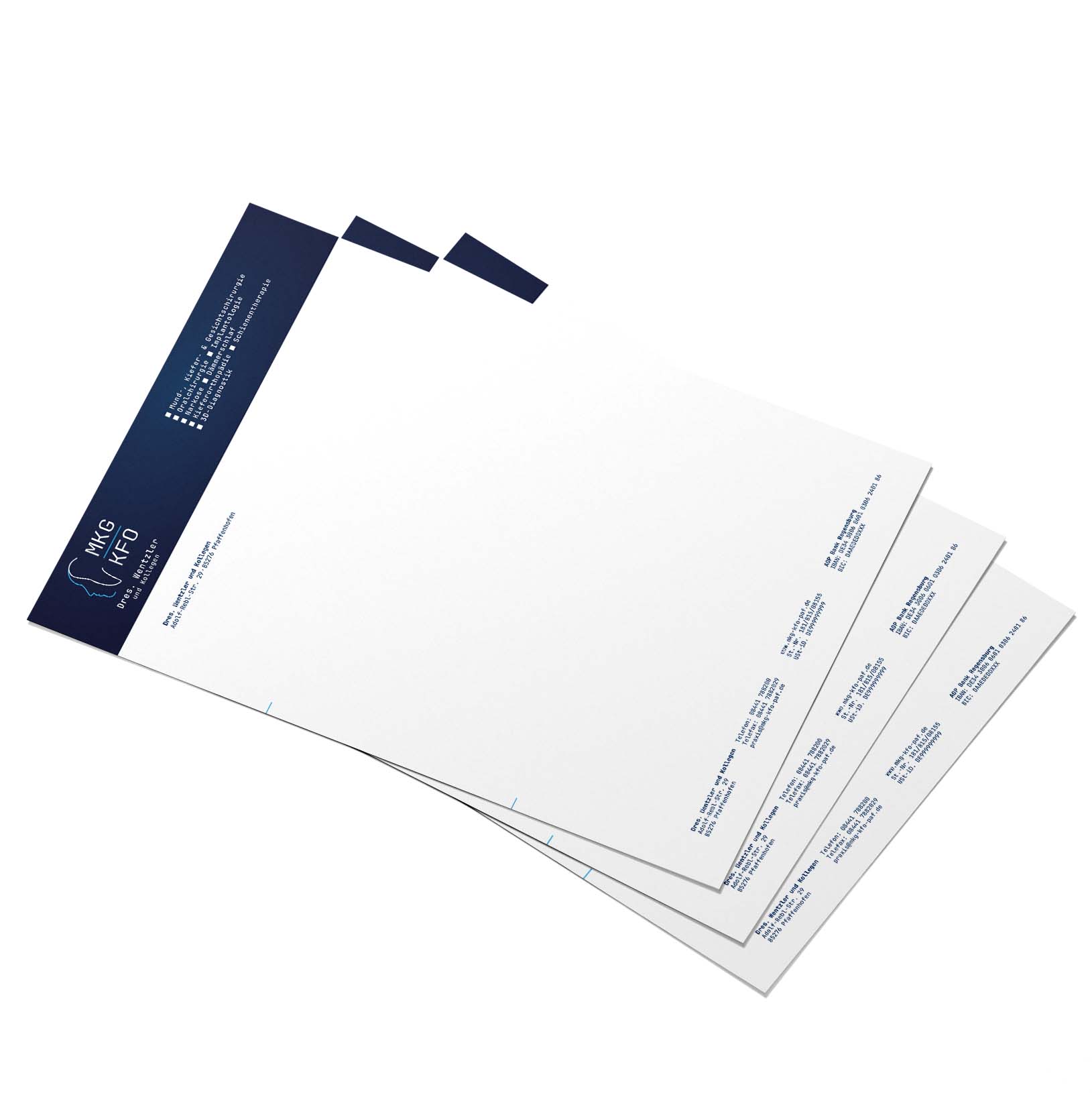 Für die Praxis MKG | KFO Dres. Wentzler in Pfaffenhofen haben wir ein umfangreiches Corporate Design entwickelt.