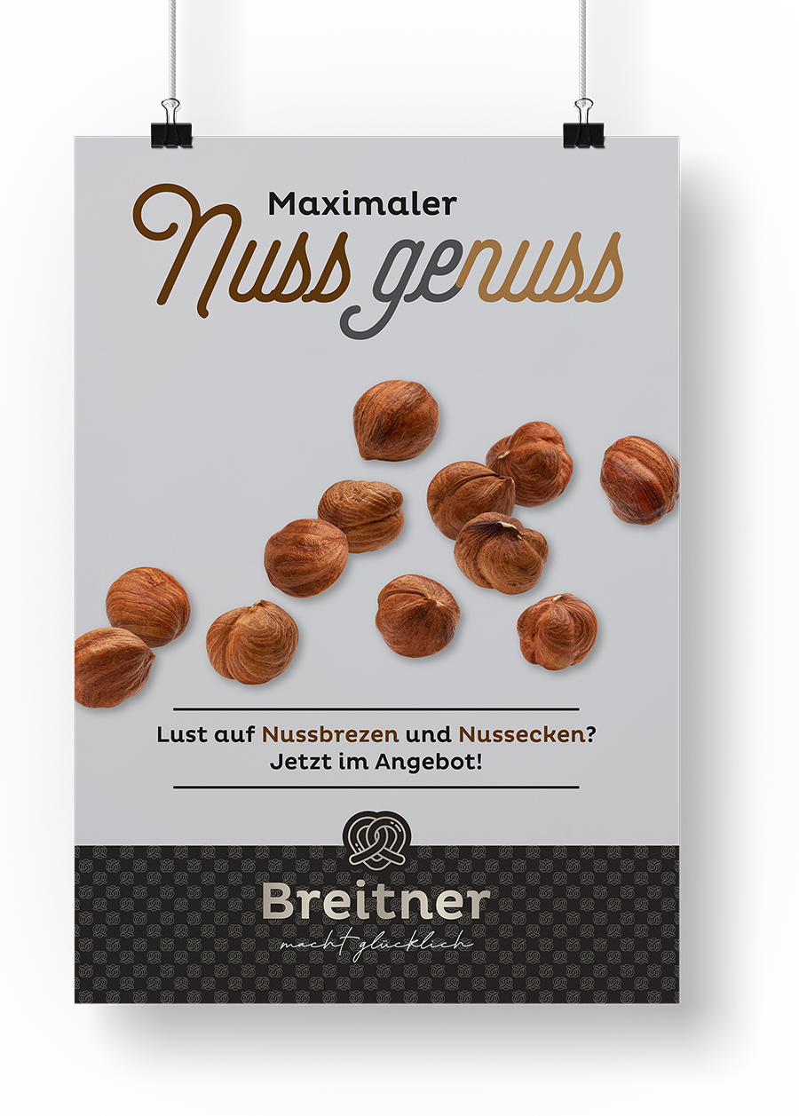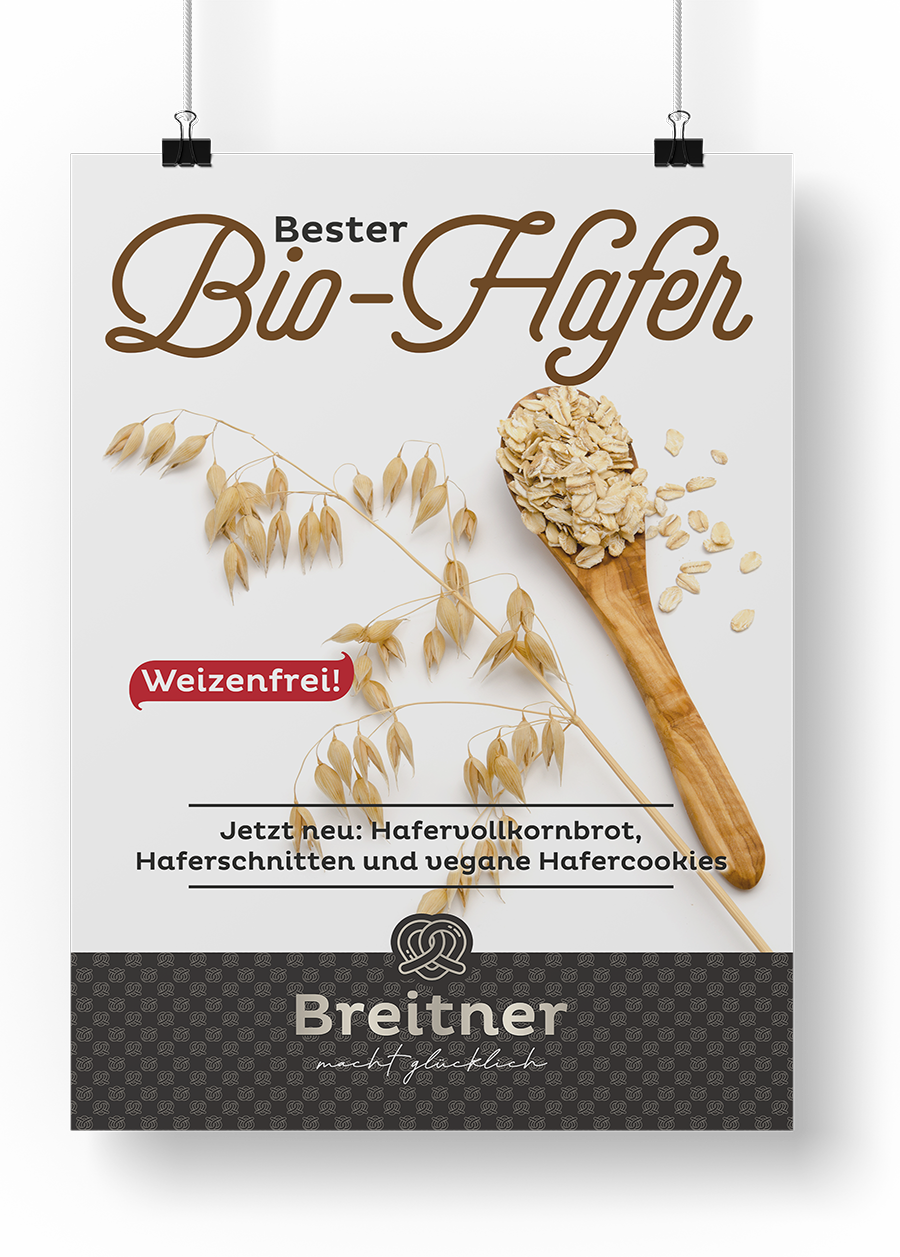 Die Bäckerei Breitner aus Pfaffenhofen setzt nicht nur auf Qualität, sondern auch auf kreative Plakate, um ihre Kunden auf aktuelle Angebote hinzuweisen. Mit dem neuen Corporate Design hat die Bäckerei eine Serie von Plakaten, Anzeigen und Social Media Postvorlagen gestaltet, die in allen Filialen aufgestellt und aufgehängt werden.