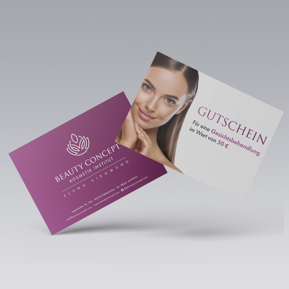 Für das Kosmetikinstitut „Beauty Concept“ in Pfaffenhofen haben wir ein umfassendes Corporate Design entwickelt. Neben einem frischen Logo, Visitenkarte und Briefpapier haben wir auch die Lichtreklame und Schaufensterbeschriftung realisiert. Zur erfolgreichen Eröffnung leisten wir natürlich auch umfassende Beratung und Abwicklung zu Druckaufträgen, Werbetechnik und Webdesign.