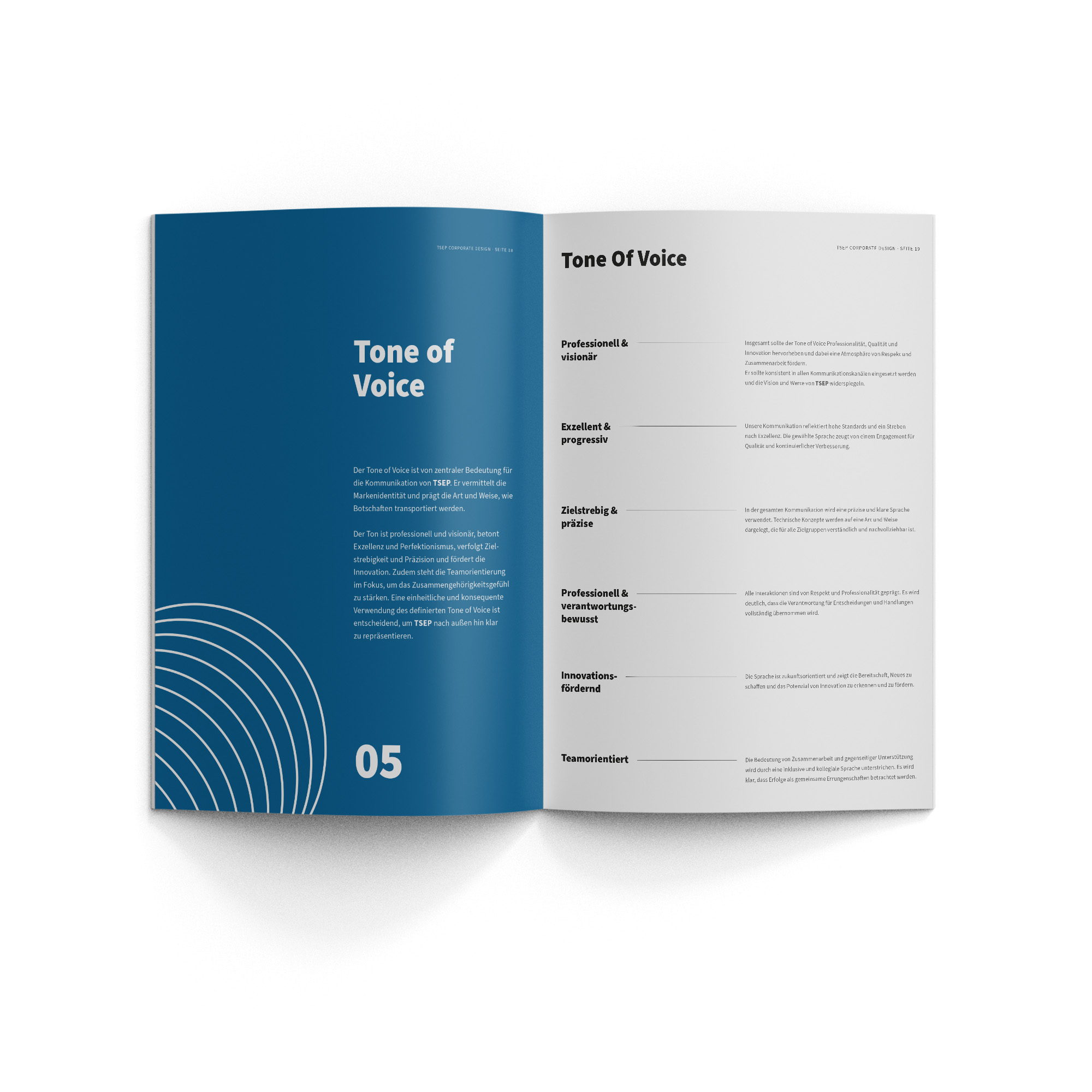 Basierend auf diesem Corporate Design wurde ein umfassender Brand Identity Styleguide erschaffen, um sicherzustellen, dass TSEP in jeder Kommunikation einen einheitlichen und überzeugenden Eindruck hinterlässt.