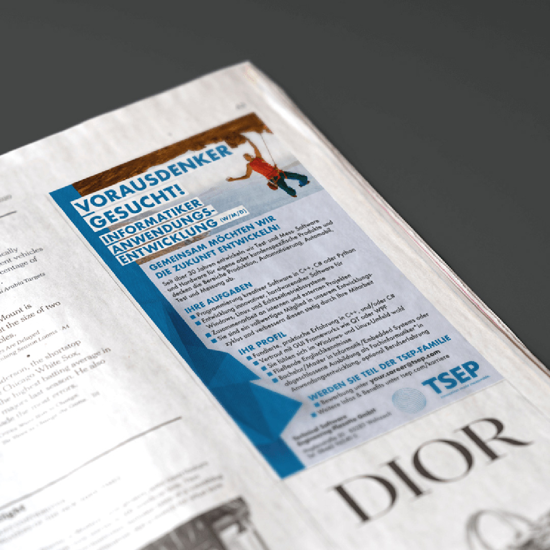 Unser Team hat ein einzigartiges Corporate Design für TSEP entwickelt. Von Farbschemata über Schriftarten bis hin zur Logo-Gestaltung und diversen Gestaltungsrastern für sämtliche Geschäfts- und Dokumentationsunterlagen haben wir jedes Detail berücksichtigt.